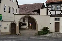 Zu dem Anwesen gehört eine mit „1604“ bezeichnete Hoftoranlage, die es mit dem Alten Rathaus von Reiterswiesen verbindet und somit beide Anwesen zu einer Baugruppe vereint. Bei der Hoftoranlage handelt es sich um ein Rundbogentor mit separater Fußgängerpforte.