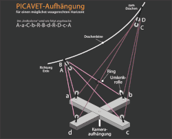Während die Drachenleine ihre Steigung ändern kann, bleibt das Kreuz des Picavets weitgehend waagrecht. Dabei läuft der Faden, gespannt von der Gewichtskraft der Kamera, so durch 8 Rollen oder Ösen, dass sich seine 8 gespannten Strecken anpassen.
