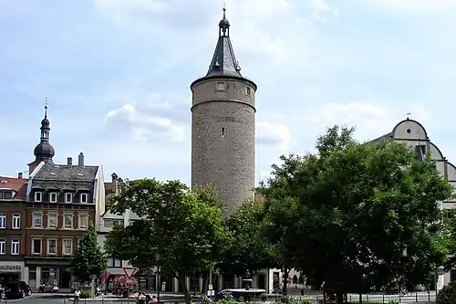 Die äußere Kitzinger Stadtbefestigung wies noch im 17. Jahrhundert 32 Türme auf und umfasste sowohl kleine Rundtürme ohne Haube als auch mehrstöckige Turmbauten mit aufwändig gestalteten Dachabschlüssen.[9] Die Türme der inneren Mauer verschwanden zumeist bereits in der Vormoderne oder wurden überbaut, wobei sich vor allem in anderen Bauten einbezogene Türme erhalten konnten. Im Zuge des Niederlegens der Befestigungsanlagen im 19. Jahrhundert verschwanden auch die meisten Türme der äußeren Ummauerung. Acht Türme wurden in den 1990er Jahren vom Bayerischen Landesamt für Denkmalpflege identifiziert.