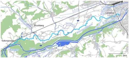 | Mündung | von links in den Hammerbach in LandshutKoordinaten: 48° 32′ 5″ N, 12° 8′ 20″ O 48° 32′ 5″ N, 12° 8′ 20″ O | |