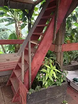 Der Botanische Garten befindet sich innerhalb der Holzstruktur und umfasst Blumen, Kosmetikpflanzen, Gewürze und Heilpflanzen. Der Klanggarten ist mit einem nachhaltigen „Tropf“-Bewässerungssystem (Hydrokultur) ausgestattet, das einen autonomen Betrieb von bis zu sechs Monaten ermöglicht. Regenwasser wird gesammelt, in Fässern gespeichert und dann über transparente Rohre Tropfen für Tropfen an den vertikalen Garten abgegeben. Dieses System funktioniert ohne Wasserverluste und macht einen ständigen Einsatz der Bewohner entbehrlich. Die Wassertropfen fallen in Kisten unterschiedlicher Größe, erzeugen Töne und bewässern die Pflanzen für die Bewohner von Bonamouti. Die unterschiedlichen Töne, die aus dem Garten dringen, haben einen direkten Bezug zum Wasserbedarf der Pflanzen. Der hängende Garten gedeiht beim Klang der Tropfen und lädt die Öffentlichkeit ein, den Wouri-Fluss von den drei Ebenen aus zu beobachten.