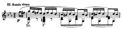 Der dritte Satz ist ein Rondo, das dasselbe Tonschema wie der erste Satz verwendet, aber in c-Moll endet und wie der erste Satz beträchtliches technisches Können erfordert.