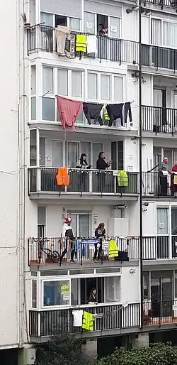 - ↑ Vicenta Linares: Los franceses abrieron sus ventanas para aplaudir al personal sanitario. In: rfi.fr. 18. März 2020, abgerufen am 12. Dezember 2023 (französisch).