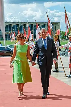 Johannis setzte sich bei der Präsidentschaftswahl am 24. November 2019 in einer Stichwahl bei einer Wahlbeteiligung von 54,86 Prozent mit 66,09 Prozent der Stimmen gegen seine PSD-Herausforderin Viorica Dăncilă durch, die 33,91 Prozent der Stimmen erhielt.[30] Seine zweite Amtszeit begann am 21. Dezember 2019.