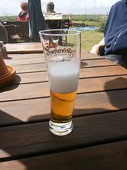 Das Segelglas einer Stralsunder Bierbrauerei soll Assoziationen an Störtebekers Segelschiffe wecken.