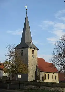 Die St.-Nikolaus-Kirche besteht aus dem älteren Turm und dem 1768 erneuerten Kirchenschiff mit dem schmaleren Chor, das zwei schmale, bemalte Rundbogenfenster besitzt.