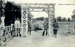 Der Kleinbahnhof war der Endbahnhof der Argonnenbahn mit einer Spurweite von 600 mm. Sie wurde am 1. Mai 1915 eingeweiht und mit modernsten Brigadelokomotiven und Benzollokomotiven betrieben.[1] Sie war ein auf vielen Postkarten abgebildetes Vorzeigeprojekt des deutschen Heeres.[2] Das vorübergehend als Kleinbahnhof genutzte Bahnwärterhäuschen ist noch erhalten.[3][4]