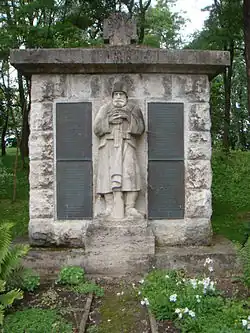 An der Kirche wurde nach dem Ersten Weltkrieg ein Kriegerdenkmal errichtet. Die Namen der im Zweiten Weltkrieg umgekommenen Soldaten wurden später hinzugefügt. Ein Vers aus dem Text der DDR-Nationalhymne steht ebenfalls auf dem Denkmal.
