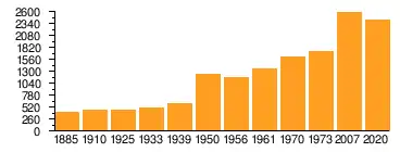 | Jahr | 1885 | 1910 | 1925 | 1933 | 1939 | 1950 | 1956 | 1961 | 1970 | 1973 | 2007 | 2020 |