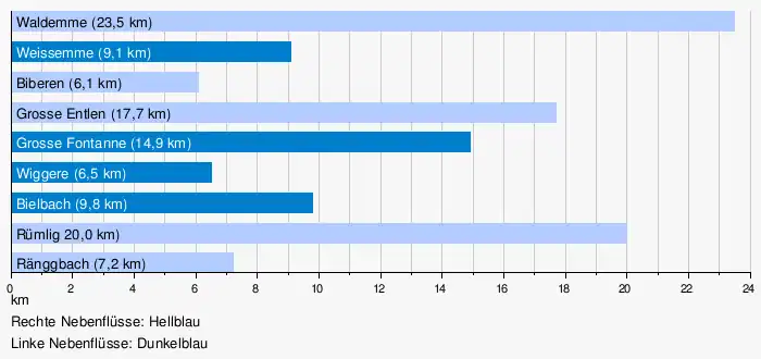 - ↑ Auswertungen zum Gewässernetz. (XLSX) BAFU, Dezember 2013, abgerufen am 21. Juli 2018 (Auflistung Fliessgewässer der Schweiz >30km).