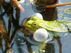 - ↑ a b c d e f Nasr M. M. Radwan, Hans Schneider: Social behaviour, call repertory and variation in the calls of the pool frog, Rana lessonae (Anura, Ranidae). In: Amphibia-Reptilia. Band 9, 1988, S. 329–351.