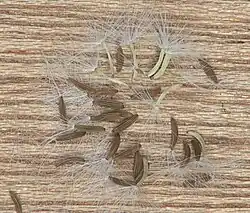 Die Achäne ist zehnrippig und es ist kein Schnabel vorhanden.[1] Der Pappus ist in mehreren Reihen angeordnet und weiß. Die Pappusstrahlen sind unverzweigt, biegsam und bei Trockenheit spreizend.