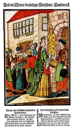 - ↑ Alfred Haverkamp, Elisabeth Müller-Luckner: Information, Kommunikation und Selbstdarstellung in mittelalterlichen Gemeinden. In: Margarete Schindler (Bearb.): Die älteren Buxtehuder Amtsstatuten. In: Niederdeutsches Jahrbuch 75. (1952) 8-47, bes. Zu den lauten Arbeitsgängen der Kürschner.; Mechthild Wiswe: Kürschner. In: Reinhold Reith (Hrsg.): Lexikon des alten Handwerks. Vom Spätmittelalter bis ins 20. Jahrhundert. München 1990, ISBN 3-486-56260-6, S. 134–139.