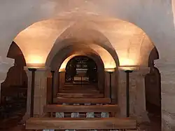 Die romanisch-gotische katholische Kirche „St. Peter und Paul“ stammt im Wesentlichen aus dem 12. Jahrhundert. Älteste Teile, die ottonischen Kapitelle im Südschiff der Unterkirche und ein Wandkämpfer, gehen vermutlich auf die Gründungszeit des Klosters im 10. Jahrhundert zurück.