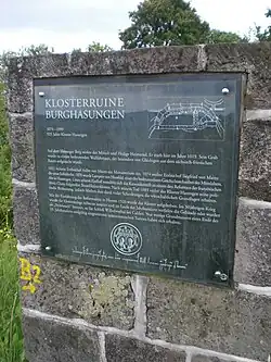 Heute erinnern auf und an dem Burghasunger Berg nur noch einige Steinhaufen, Turmreste und zwei Gedenktafeln sowie das Klostermuseum Hasungen[1] im Dorfgemeinschaftshaus an das Kloster.