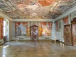 - Fürsten- oder Kuchelstock (Südflügel), dreigeschossiger Walmdachbau mit Putzgliederung und Marmor-Portalen, 1700–04 von Hanns Mayr, Hausstatt, nach Plan von Antonio Riva, im 19. Jahrhundert mehrfach umgebaut