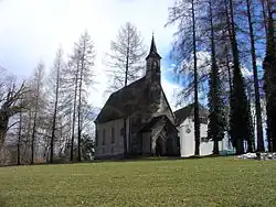 - Spätgotischer Saalbau mit eingezogenem, dreiseitig geschlossenem Chor in Tuffsteinmauerwerk, 1469 geweiht, Umbauten 1630–32 mit Verlegung des Portals nach Westen, im 19. Jahrhundert Bekrönung des Dachreiters auf dem Westgiebel und neugotische Vorhalle; mit Ausstattung