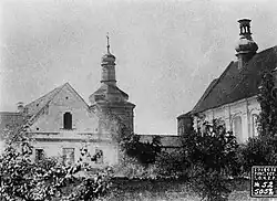 Die barocke Klosteranlage wurde 1711 errichtet. Die um 1745 errichtete einschiffige, Mariä Himmelfahrt geweihte Kirche mit hohem Dach und pilastergeschmückter Fassade mit Kapitellen und einem profilierten Gesims wurde unter den Königen August II. und August III. reich ausgestattet. Das aus Stein errichtete Kloster besaß im Erdgeschoss die Sakristei, den Kapitelsaal, das Refektorium, Räume für die Novizen sowie fünf Mönchszellen, im Obergeschoss befanden sich die Räume des Priors, die Bibliothek mit 850 Werken sowie weitere Zellen. Zum Kloster gehörte auch ein Wirtschaftsgebäude[4].