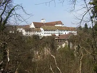 Der Konventstock befindet sich im Osten (Felsseite), die Kirche im Norden mit einem Anbau (Glutzbau) mit der Reichensteiner Kapelle, im Süden ist der Kreuzgang in den Bibliotheksbau integriert, und im Westen erstreckt sich an Stelle eines früheren Kreuzganges ein durchbrochener Trakt (Klosterpforte).