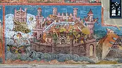 Das Kloster Moldovița wurde 1532 von Petru Rareș, einem unehelichen Sohn von Ștefan cel Mare, gestiftet. Die Kirche im traditionellen Dreikonchentypus mit fünf Räumen ist mit Wehrtürmen und Mauern umgeben. Die Innen- und Außenwände der Kirche wurden 1537 mit Wandmalereien versehen. Bedeutend sind u. a. Das Jüngste Gericht sowie eine Darstellung der Belagerung Konstantinopels an der Südfassade.