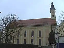 1701 wurde die frühere gotische Kirche des Klosters durch Feuer beschädigt. Nach einem Einsturz von Gewölbeteilen und langen Verhandlungen wurde die baufällige alte Kirche mit Ausnahme des Chores abgetragen und ab 1726 durch den Münchner Baumeister Johann Michael Fischer wiedererbaut. Fischer lockerte den langen Rechteckbau in seinem Inneren durch zahlreiche Rundungen und Ovale auf. An die Stelle der Doppeltürme des Vorgängerbaues, deren Stümpfe in den Neubau einbezogen wurden, trat ein Dachreiter.