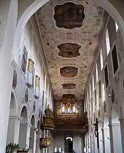 Die Hauptorgel wurde 1981 von der Orgelbaufirma Mathis (Näfels, Schweiz) im barocken Prunkgehäuse von Abt Maurus Xaverius Herbst gebaut. Das Instrument hat 29 Register auf zwei Manualen und Pedal. Die Trakturen sind mechanisch.[11]