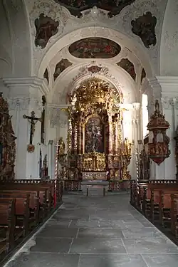 Die Malereien in Kirche, Einsiedlerkapelle und Sakristei stammen vom Konstanzer Hofmaler Jacob Carl Stauder (1694–1756), der die Kirche zwischen 1733 und 1738 mit zahlreichen Gemälden ausstattete. Die Kirche wurde 2005–2007 restauriert.[15]