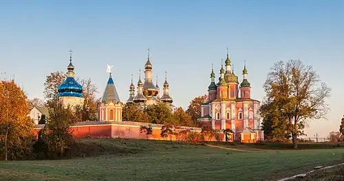 Nach einem weiteren Brand 1671 wurden alle Gebäude aus Backstein errichtet. In den Jahren 1672 bis 1676 wurde eine Dreifaltigkeitskathedrale auf Kosten von Hetman Iwan Samojlowytsch erbaut. Am 23. Mai 1675 weihte der Erzbischof von Tschernihiw Lasar Baranowytsch hier Dimitri von Rostow zum Priestermönch. 1695 wurde auf Iwan Masepas Kosten eine Kirche der Mariä Himmelfahrt erbaut. Im Kloster wurden, insbesondere in der ersten Hälfte des 17. Jahrhunderts, Chroniken aufbewahrt.[1][2][3]