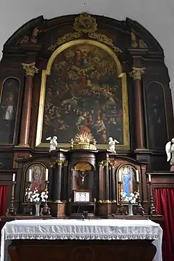 Der Hochaltar und die zwei Seitenaltäre sowie der Altar der Seitenkapelle sind aus der Bauzeit. Das Hochaltarbild (Schutzengel) mit Heiligen und Marienkrönung malte Johannes Vitus Hauckh (1709). Es wurde 1952 restauriert. Von Hauckh ist auch das Altarbild mit dem hl. Valentin aus dem Jahr 1712 am Altar der Seitenkapelle. In der Loretokapelle steht ein Altar mit einem klassizistischen Säulenaufbau mit zwei guten weiß gefassten Statuen der Heiligen Joachim und Anna, welche aus der Kapuzinerkirche Leibnitz hierher übertragen wurden. Sieben Bilder aus dem Jahr 1700 zeigen Szenen aus dem Leben der Maria.