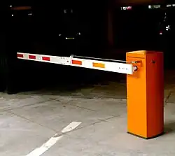 Eine Knickarmschranke ist eine Schranke, deren Schrankenbaum in einem 90°-Winkel einknickt. Unter anderem wird die Knickarmschranke auch Parkhausschranke genannt, weil sie am häufigsten in Parkhäusern zum Einsatz kommt. In Parkhäusern kommen sie aus Platzgründen zum Einsatz: Wegen der niedrigen Höhe der Autos sind die Decken meist sehr tief gebaut. Da Knickarmschranken höchstens einen Abstand von 5 cm zur Decke brauchen, muss man die Decken nicht viel höher als die Autos bauen.