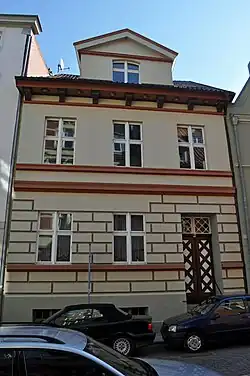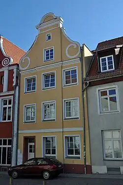 | 3 | Das Giebelhaus mit seinem Volutengiebel mit Segmentbogenabschluss wurde in der Mitte des 18. Jahrhunderts errichtet. Es ist dreigeschossig und dreiachsig ausgeführt. Die Putzfassade wurde vereinfacht. Prägend sind neben dem Giebel auch der Mittelrisalit und das Hauptgesims. | 427 |