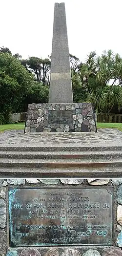 Auf dem Postament befindet sich eine Tafel aus Bronze, die an die Eröffnung des Straßenabschnittes des New Zealand State Highway 6 zwischen Haast und Paringa am 6. November 1965 durch den Premierminister Keith Holyoake erinnert, womit die Verbindung zwischen Westland District und Otago (über den Haast Pass/Tioripatea) erfolgt ist.