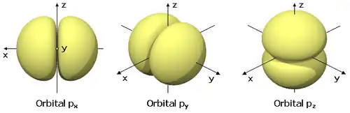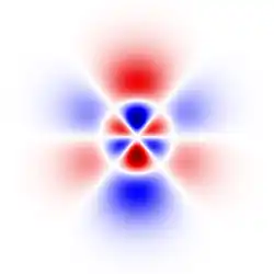 - l Knoten im winkelabhängigen Teil der Wellenfunktion (Nebenquantenzahl l < n). Diese Knoten verlaufen durch den Atomkern und sind wichtig bei der Ausbildung kovalenter Bindungen.