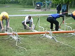Spitzensportler bewältigen die Knotenbahn, zu der noch jeweils fünf Meter An- und Ablaufstrecke gehören, unter 30 Sekunden.[1]