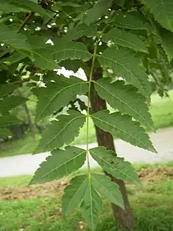 Gefiedertes Blatt der Blasenesche (Koelreuteria paniculata)