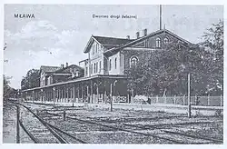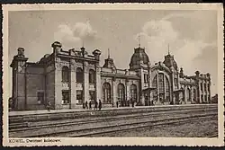 Bei Warschau wurde zunächst ein Bahnhof bei der damaligen Vorstadt Praga (ostwärts der Weichsel) errichtet. Der Bahnhof Warszawa Praga befindet sich heute im Stadtbezirk Targówek (Nowy Bródno); das ursprüngliche aus Holz errichtete Empfangsgebäude existiert nicht mehr, der Bahnhof wird heute als Haltepunkt sowie als Rangierbahnhof genutzt. Über die Ringlinie Kolej Obwodowa, die die 1875 errichtete Most przy Cytadeli zum Weichselübergang nutzte, die südlich des Pragaer Bahnhofs abzweigte, konnte der im Westen des Flusses gelegene Hauptbahnhof Warschaus (Dworzec Wiedeński) erreicht werden.[9] 1880 wurde dann an der Kolej Obwodowa (auf westlicher Flussseite) der heutige Bahnhof Warszawa Gdańska eröffnet. Er wurde zunächst als Główny Dworzec Kolei Nadwiślańskiej (dt.: Hauptbahnhof der Weichselbahn), später als Dworzec Kowelski (dt.: Kowelski-Bahnhof) bezeichnet.