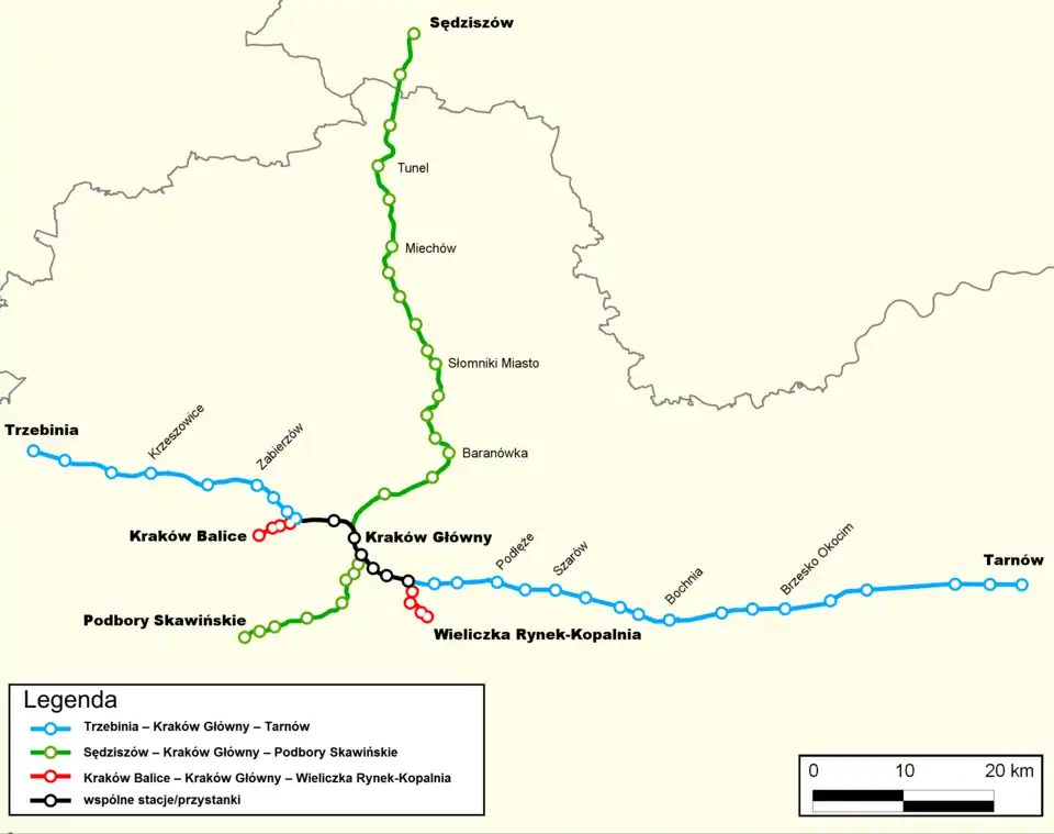 - ↑ a b Ruszyło połączenie do Międzynarodowego Portu Lotniczego im. Jana Pawła II w Balicach. Website der Koleje Małopolskie, 28. September 2015, abgerufen am 15. November 2015.
