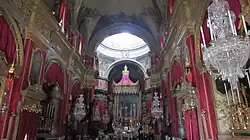 Die Kirche ist eine dreischiffige, kreuzförmige Basilika mit hoher Vierungskuppel. Sie ist reich mit Altären, Statuen und Gemälden bedeutender Künstler des 18. Jahrhunderts ausgestattet. Stefano Erardi schuf das großflächige Hochaltarbild Schiffbruch des hl. Paulus. Unter den Bildern der Seitenaltäre befinden sich eine Darstellung des heiligen Publius von Mattia Preti sowie das Abendmahl und die Heilige Familie von Francesco Zahra.