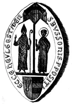Das Siegel der Pröpste und der Offiziale zeigte die Heiligen Aureus und Justinus, im Gegensatz zum Siegel des Kapitels, welches den Heiligen St. Martin im Siegel trug.[2]