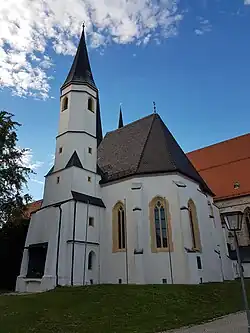 Um 1420 wurde die Kapelle als Peter- und Paulskirchlein an der Südostecke des Kreuzgangs erbaut. Sie ist Teil einer reizvollen Doppelanlage mit zwei Chören, südlich die Tillykapelle und nördlich angebaut ein Zweigeschossbau (unten der ehemalige Karner und oben die Sieben-Schmerzen-Kapelle). Das von Hans Ponhaymer 1425 gestiftete Glasfenster zählt zu den besten erhaltenen der südostbayerischen Spätgotik. Die Kapelle besitzt einen frühbarocken von Hans Pernegger 1643 geschaffenen Kreuz-Hochaltar. Weitere Ausstattungsstücke sind unter anderem zwei Ölgemälde (Gastmal bei den Pharisäern und Graf Tilly-Porträt). Im kleinen Nebenraum im Turmerdgeschoss werden Reliquien aufbewahrt.