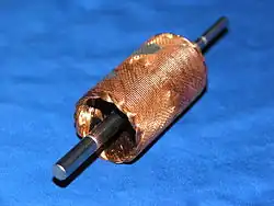 Merkmal der klassischen Gleichstrommaschinen ist ein als Kommutator oder Polwender bezeichneter mechanischer Wechselrichter.[1] Mit dessen Hilfe wird im Motorbetrieb im Rotor ein drehzahlabhängiger Wechselstrom erzeugt. Im Generatorbetrieb wandelt er die vom Rotor gelieferte Wechselspannung in eine pulsierende Gleichspannung um.