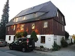 1752 | Das Haus wurde 1752 als zweites Haus der Kolonie errichtet und ist heute das älteste Haus des Ortes. Darin richtete David Uh 1789 die wohl erste Tabakfabrik der Oberlausitz ein. Später diente es als Wohn- und Geschäftshaus. Das Obergeschoss und der Giebel bestehen aus verbrettertem Fachwerk. Die Fenster sind noch in originaler Größe erhalten. Das Dach ist ein steiles Krüppelwalmdach mit Hechtgaube. | 09253028 | |