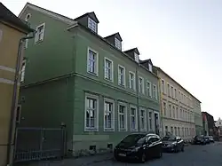 1819 | Der Vorgängerbau an dieser Stelle, ein Wohnhaus von 1765, wurde 1819 durch einen Neubau ersetzt. Ab 1885 befand sich das Haus im Besitz der Familie Glitsch. Danach diente es als Dienstwohnung des Knabenschulheims und des späteren Alten- und Pflegeheims. Heute wird das massive, eingeschossig Haus mit Krüppelwalmdach als Wohnhaus genutzt. An der Vorderseite des Dachs befinden sich fünf Fledermausgauben, an der Rückseite fünf Dachhäuschen. | 09253032 |