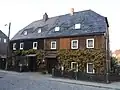 1766 | Das Gebäude wurde 1766 als Wohnhaus und Gerberei erbaut. Im Jahr 1845 wurde die Lederhandlung aus dem Herrenhaus des Ritterguts in die Gerberei verlagert. Die zum Gerben nötige Lohe wurde in der zum Brüderhaus gehörenden Lohemühle (erbaut 1857, abgerissen 1902) hergestellt. Der entstandene Lohkäse konnte ebenfalls im Laden gekauft werden. Im Jahr 1856 wurde die Gerberei verpachtet, 1902 verkauft und während des Ersten Weltkriegs geschlossen. Das Obergeschoss des Gebäudes ist als verschiefertes Fachwerk ausgeführt. Der Giebel wurde verputzt. | 09253101 |