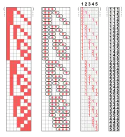In der nebenstehenden Abbildung wird das Ergebnis für ausgewählte Elementen aus möglichen Elementen veranschaulicht, wobei die schwarzen Ziffern die Elemente der Auswahlmenge darstellen und die roten Ziffern jeweils die (wiederholt) gewählten Elemente zählen. Es ergeben sich somit mögliche Kombinationen.
