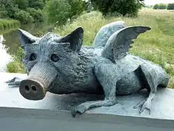 - GrünGürteltier-Bronzeskulptur (2006) – Robert-Gernhardt-Brücke über die Nidda, Alter Flugplatz, Bonames[11]