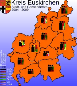 | Räte der kreisabhängigen Städte und Gemeinden im Kreis Euskirchen | ||||||||||