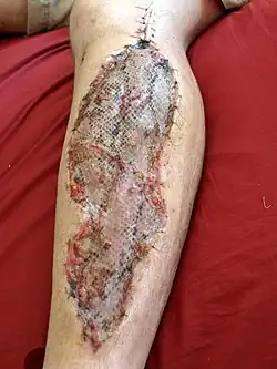 Durch das Setzen von vorgelegten Nähten kann ein weites Auseinanderklaffen der Wundränder vermieden und eine schrittweise Wiederannäherung vorbereitet werden. Die Wunde wird nach Rückgang der Schwellung in der Regel mittels Sekundärnaht oder Spalthauttransplantation verschlossen. Im Bereich des Abdomens können chirurgische Netze bzw. Lappentransplantationen durchgeführt werden.