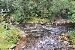 Treffen zwei oder mehrere Gletscherströme aufeinander, kann es ebenfalls zu verstärkter Erosionsleistung beim vereinten Eisstrom kommen. Nach dem Abschmelzen der Gletscher bilden die Flüsse der betreffenden Täler vor ihrem Zusammentreffen Wasserfälle oder steile Schluchten aus. Bekannt ist der innerstädtische Gasteiner Wasserfall der Gasteiner Ache vor der Einmündung des Kötschachbaches. Der benachbarte Mallnitzbach überwindet in der Rabisch-Schlucht eine mit dem Dösenbach gemeinsame Konfluenzstufe. Auch im Südschwarzwald schneiden die Menzenschwander und die Bernauer Alb vor ihrem Zusammentreffen gefällereiche kleine Schluchten in ihre in den letzten Kaltzeiten entstandene Konfluenzstufe. Eine Geländestufe, bei der die Interpretation als Konfluenzstufe naheliegend ist, findet sich auch im Rhonetal bei Fiesch, wo das Rhonetal an der Stelle der Einmündung des Fieschertals eine deutliche Versteilung aufweist.[1][11] Während des Letzteiszeitlichen Maximums trafen sich hier der Rhone- und der Fieschergletscher.