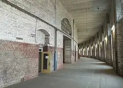 Da der Innenraum nicht fertiggestellt wurde, ist im Innenhof das Ziegelsteinmauerwerk mit (wenigen) Betoneinsätzen offen sichtbar. In der Halle sollte neben den Tribünen und dem zentralen Rednerpult mit Naturlichtbeleuchtung des teilweise verglasten Daches eine riesige Orgel eingebaut werden, um den Eindruck eines Sakralbaus zu erwecken.[1]